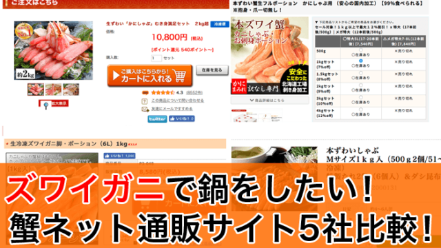お得にカニを買う 2020年 ズワイガニで鍋するならお得なのはどこだ!蟹ネット通販サイト5社比較してみました! 2020年12月14日 管理人ゆーすけ https://kani-kau.com/wp-content/uploads/2018/09/toplogo.png 通販でカニを買うならこのサイト! 比較した人気蟹通販サイト ズワイガニの量 値段 かに本舗 2.6kg 11800円+送料無料 …